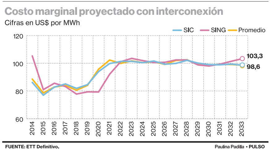 This is a key input for defining the interconnection project of the country’s two major electricity systems, the SING and the SIC, a decision that is in the hands of the Minister of Energy, Máximo Pacheco, and which is expected to be made public next week at the latest.